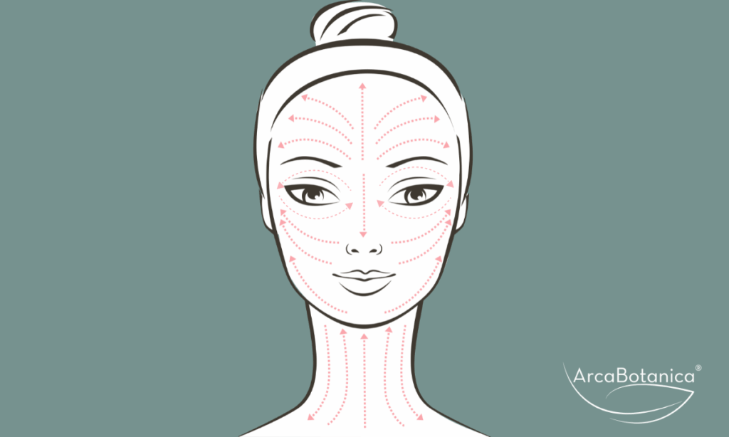 Inizia dal collo seguendo le direzioni indicate nell’illustrazione, poi passa al mento e procedi verso le orecchie, con movimenti circolari delicati o leggeri tratti verso l’alto.