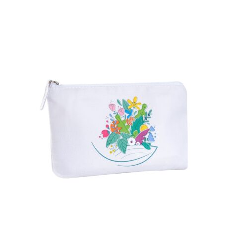 Un kit utile, pratico e responsabile, da portare sempre con sé nella pratica e allegra pochette green realizzata in RPET, materiale ottenuto dal riciclo della plastica (come le bottiglie), che contribuisce a ridurre i rifiuti, il consumo di energia e le emissioni di CO₂.