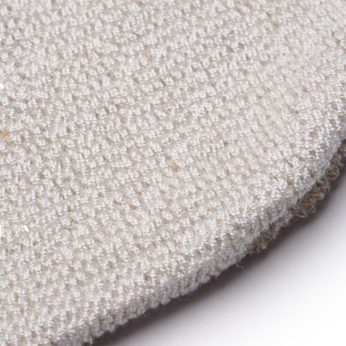 Realizzata in Italia con filato di Lino e di Bambù, è dotata di una fascia elastica al polso che assicura una vestibilità comoda e sicura durante l’utilizzo.